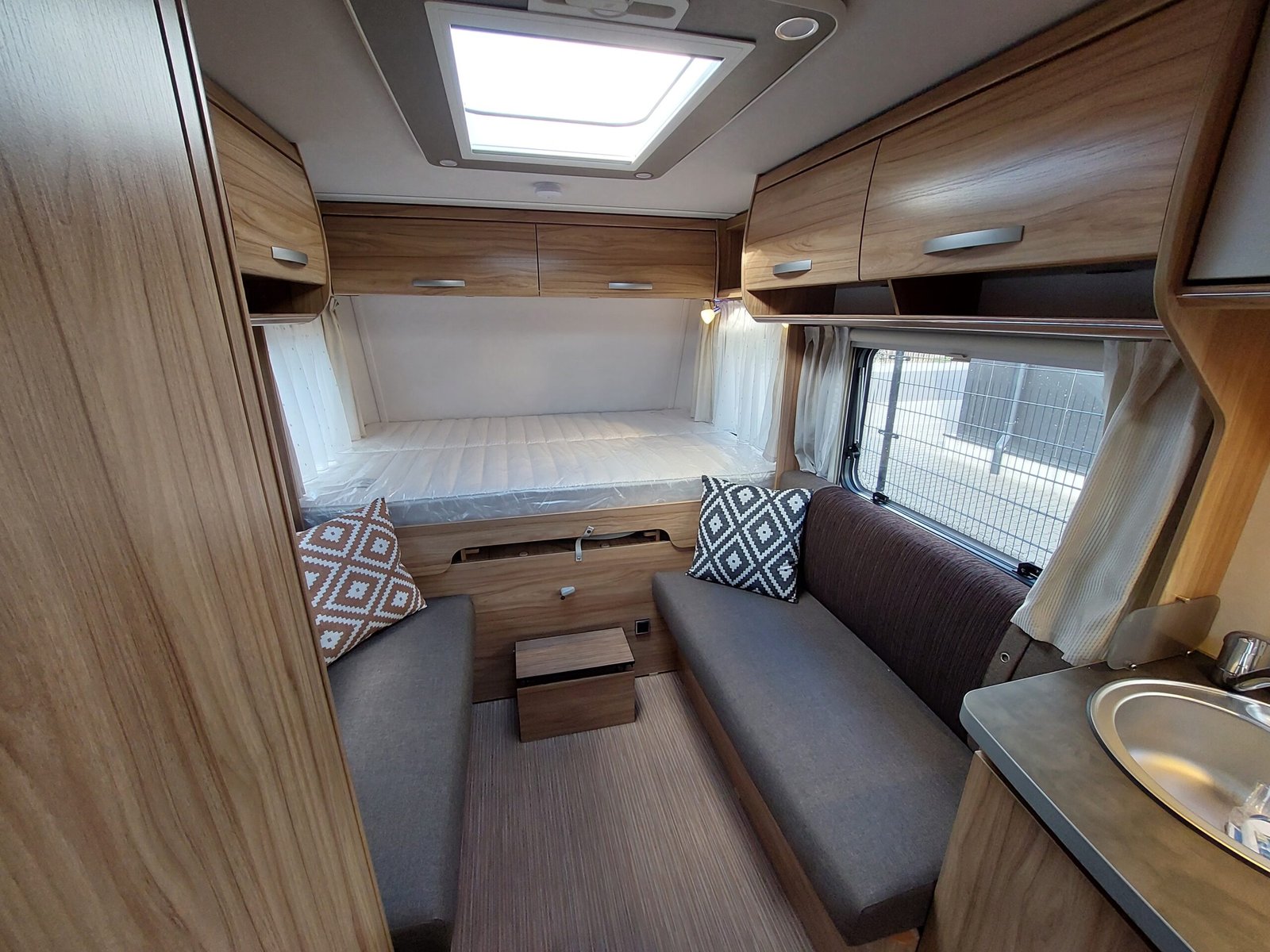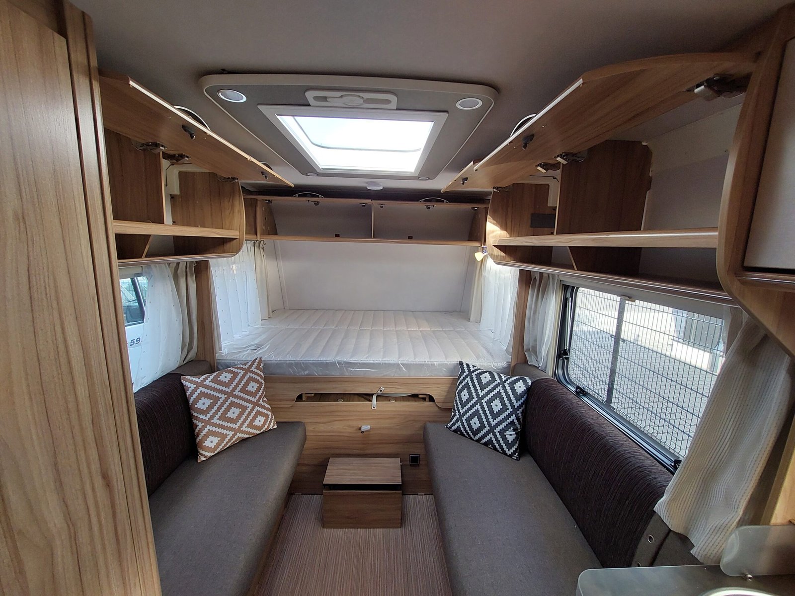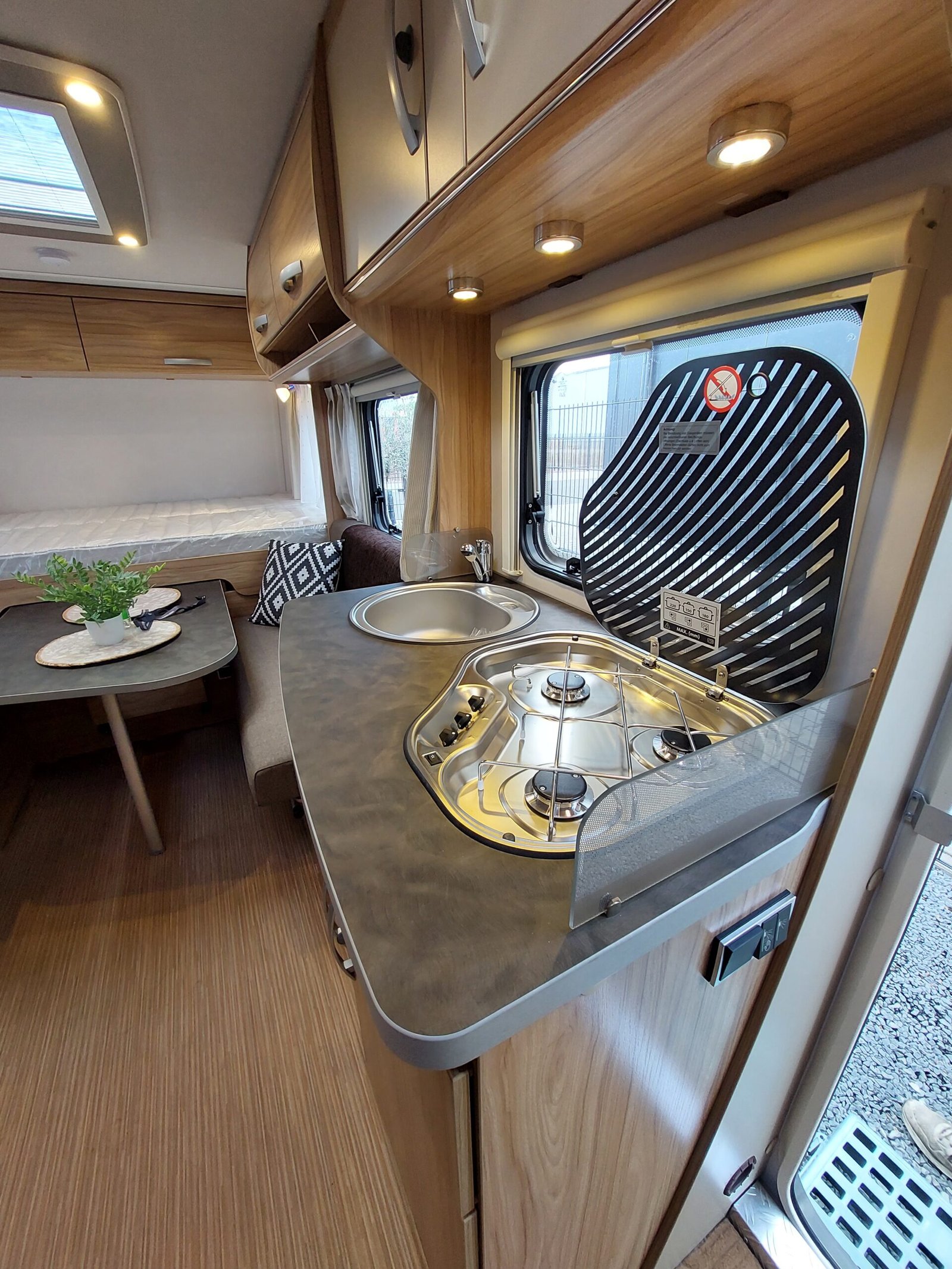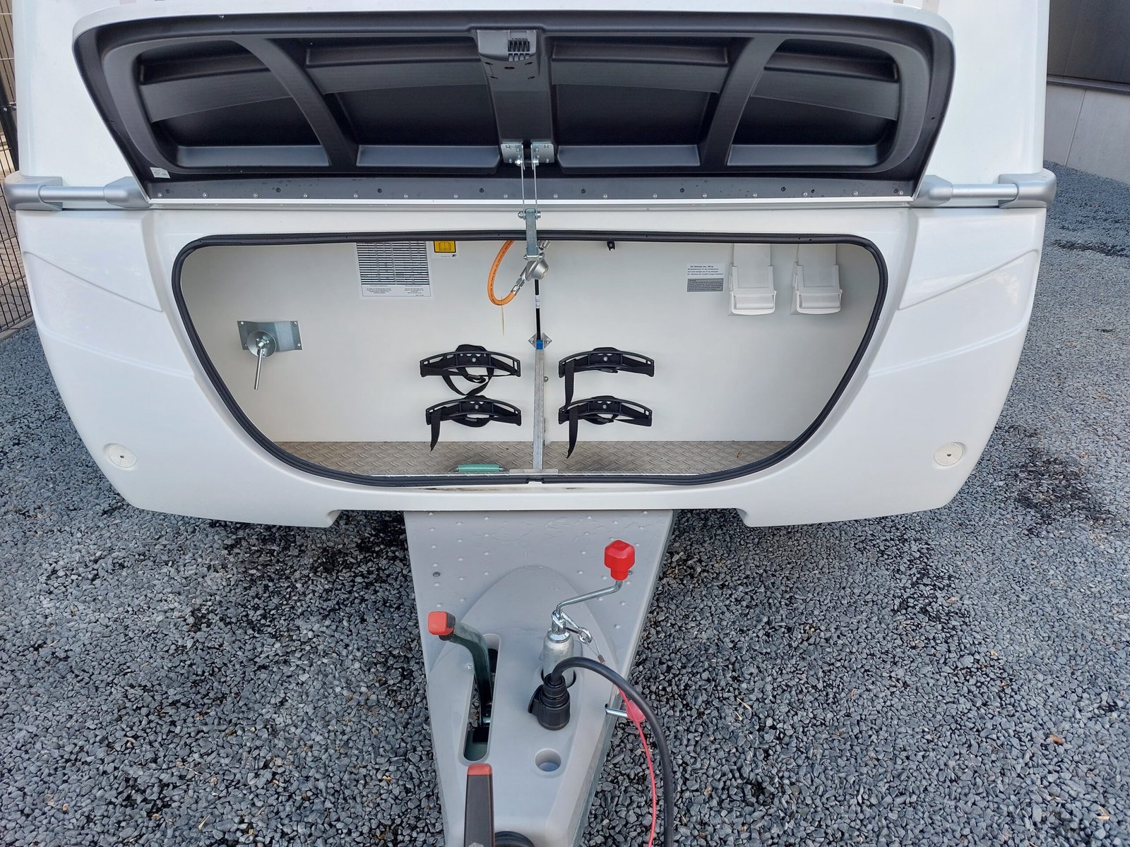 – geintegreerde voorberging voor 2 gasflessen en reserve wiel, vuilwatertank en oprijwiggen