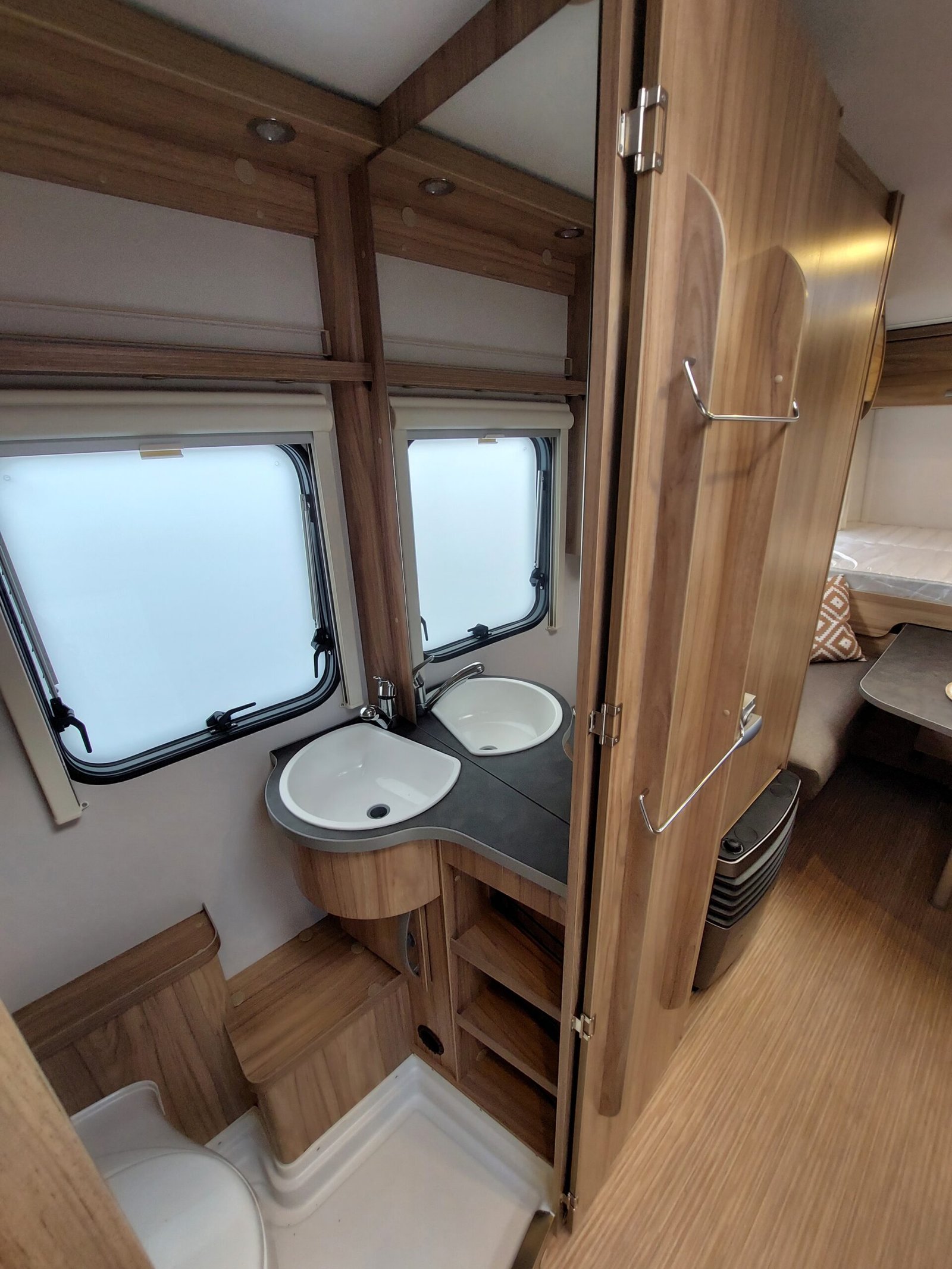 verder heeft de eriba aan de binnenzijde een ruime kledingkast met wasvak vertelbare plank in hoogte
